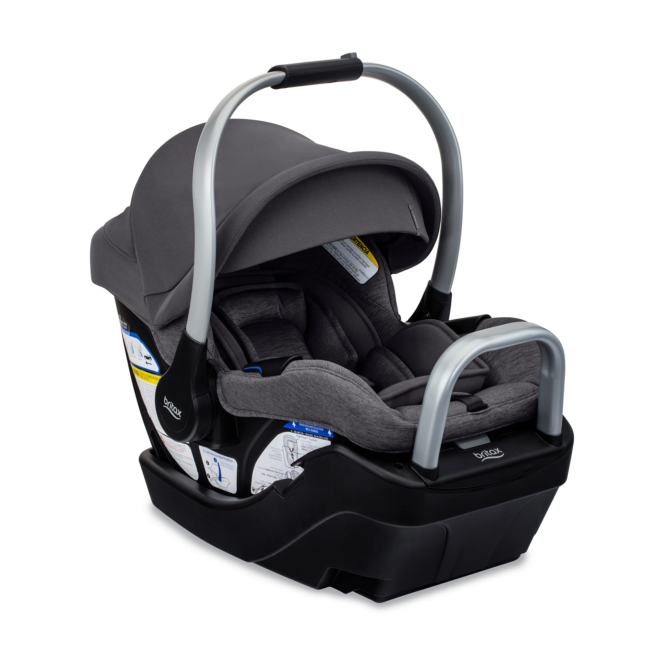 Cherish the journey together with the Cypress™ infant car seat and Alpine™ base. This rear-facing car seat offers convenience, premium style, and trusted Britax safety, giving you the assurance you need on your first ride home and every drive after. Our exclusive ClickTight® technology provides a simple installation in 3 easy steps: open, thread and buckle, click it closed. This newborn car seat offers the perfect combination of style and convenience. The double-knit mélange accents have a soft sheen and a smooth finish for an elegant look and feel. Made with SafeWash® performance fabrics, the cover is washer and dryer-friendly and naturally flame-retardant with no added FR chemicals. Cypress includes three padded inserts to help create a cozier and more customized fit. Two of the inserts layer behind baby’s head and neck for support. This infant car seat also features an aluminum carry handle that easily adjusts with one hand to keep your other hand free. The Alpine base is equipped with a ReboundReduce™ stability bar to help minimize movement so you can travel with confidence.
